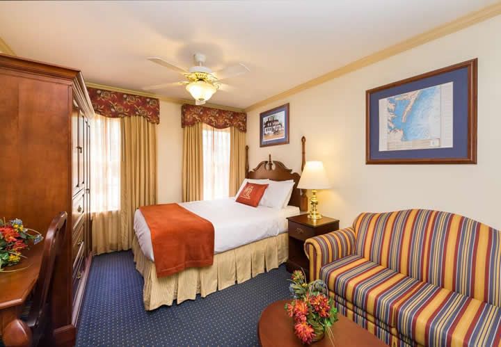 The Colonial Guestroom is located adjacent to the main property; view the proximity on the Resort Map.